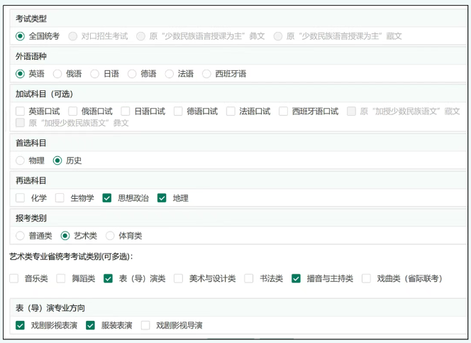(2)报考对口招生考试的考生,需选择对口招生考试专业类别,选择“文化艺术类”的考生还需选择“艺术专业省统考考试类别”。