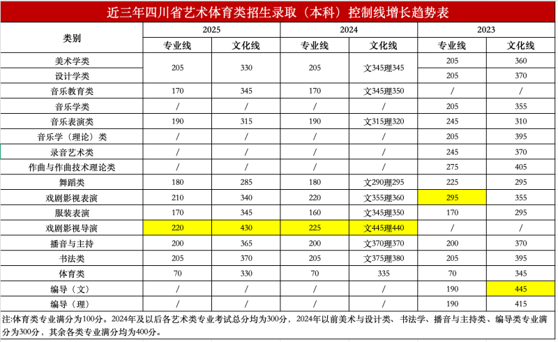 四川省从2024年起,艺术类录取已全面实行按综合分投档!综合分=文化成绩×0.5 + 专业成绩×2.5×0.5