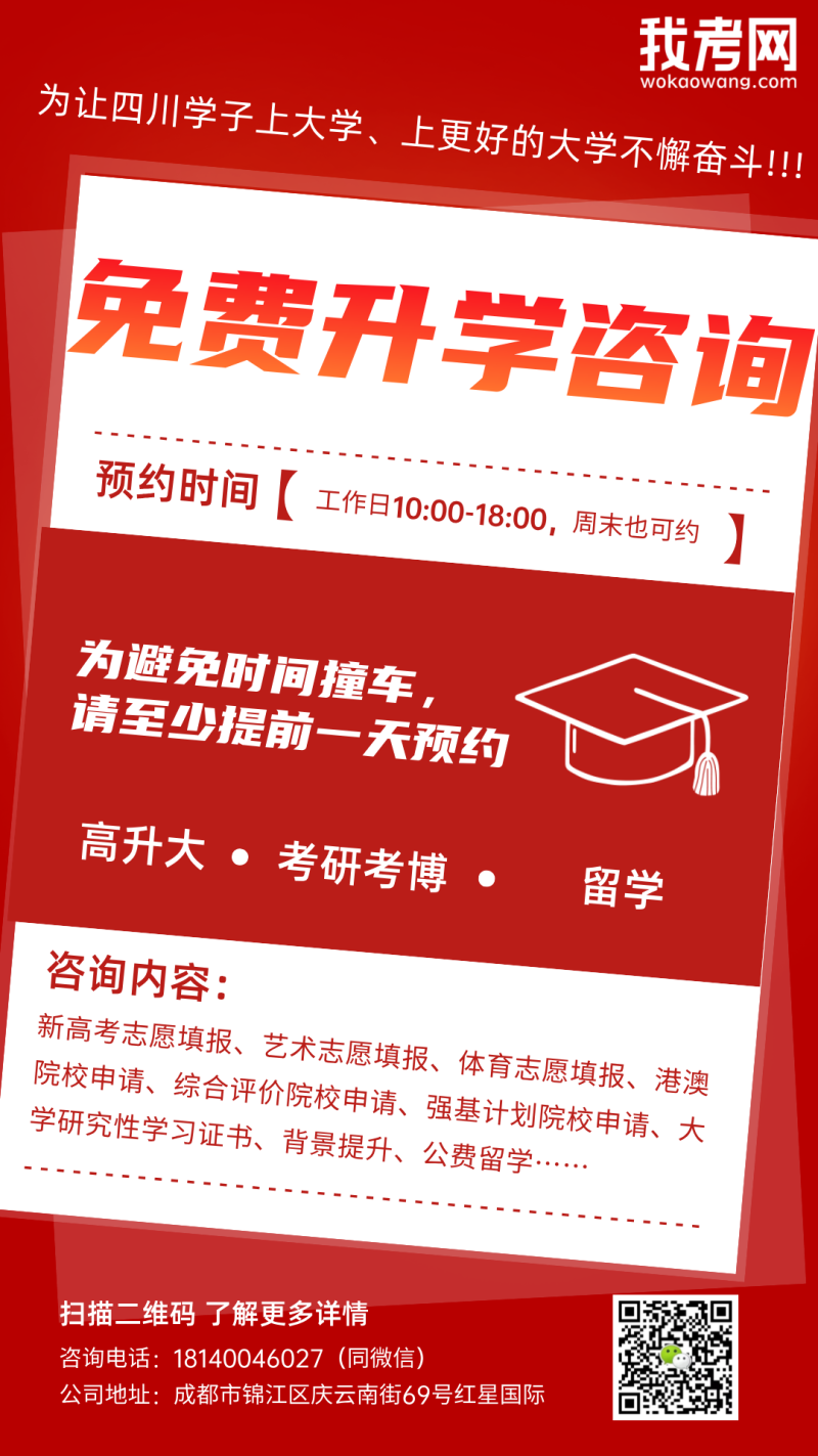 欢迎预约1V1升学规划咨询,咨询内容包含但不限于:升学咨询、选科咨询、志愿填报、升学路径、多元规划、留学、院校专业选择、职业兴趣测评等。周末节假日均可咨询,须提前预约!